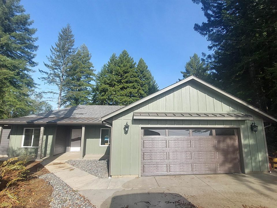 Wrapped with the promise of quality craftsmanship and luxurious materials, this brand-new custom home stands ready to welcome its first family—perhaps just in time to hang stockings and tie a big red bow around a dream come true. Situated on a beautiful Redwood studded .56 ac lot, in a well-kept neighborhood out of town and just a short jaunt to the pristine Smith River. In front of the home stand a magnificent never-dying Redwood stump that is sure to become a centerpiece for feature land scaping plans. A welcoming and functional covered front porch framed by a metal roof greets friends and family with room to sit a spell. Step through the front door under vaulted ceilings with elaborate windows that pull the exterior green scape right into the home from your first glance. The glass doors along the living room open out to the back patio. Ready for summer BBQ’s and stories around the fire pit. This home sits just above a rustic pasture that leads out to the river at the base of a forested picturesque mountain loaded with lush Redwood trees. Modern open floor plan in the living spaces with a formal dining room that could easily serve as a 4th bedroom. The well-equipped kitchen is adorned with luxury granite counter tops, a deep undermount sink, pull out cabinets in the pantry, an oversized bank of drawers, seeded glass accents in the upper cabinets, a wrap-around breakfast bar sure to invite conversation, while the cook explores culinary adventures on the gas range. The primary bedroom is masterfully tucked to one side of the home offering a quite sanctuary, featuring a large walk-in closet and bathroom with custom tile walk-in shower and double sinks. This home boasts an impressive amount of storage throughout the entire home that is sure to keep you organized in a home where everything has a place. This is not just a house, it’s the start of a story, beautifully crafted home ready for warm laughter, holiday gatherings with family and friends, the simple rhythms of life to fill its walls. Tie the ribbon and step inside, your new home awaits.