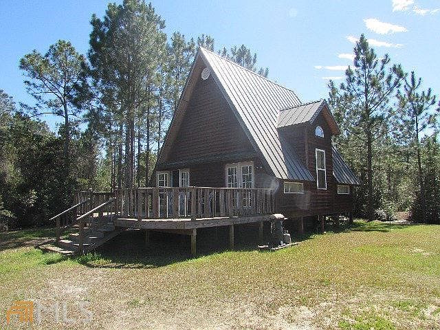 This is a lovely cabin getaway! Nestled in the woods of Nahunta, completely secluded and private with it's own pond surrounding property. Double decks on the back of the home and extra large front deck are great for entertaining or just hanging out and listening to the nature around you. This is a gem! It does need some painting and finishing touches on the interior that the buyer is willing to negotiate with but the home is solid as a rock! Shown by appointment only.