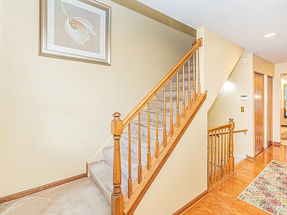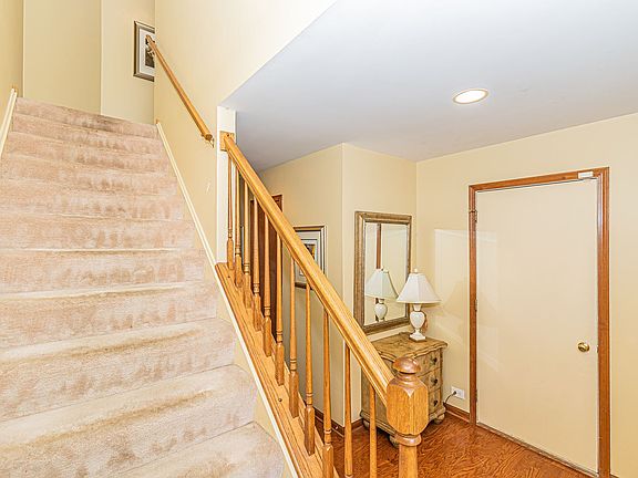 Beautiful end unit with an unbeatable location. Home has 3 spacious bedrooms, 2.5 baths. Master bath has whirlpool, separate shower, and a sky light. A cozy living room with gas log fireplace with a large deck off to the back. Basement with a wet bar and a hobby room. Close to Spring Hill Mall, highways, and backs to a forest preserve with trails. This home has it all!