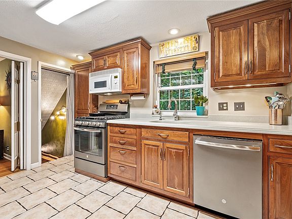 Welcome home! This charming house is nestled on a wooded lot in the highly sought-after Crescent Hills community and is Move-In ready! Stone landscaping surrounds the home, including a tiered deck & private courtyard creating delightful outdoor spaces to enjoy. The property has been lovingly maintained & fully renovated. A unique kitchen w/ custom built dove tailed inlaid cherry wood cabinets w/ leaded glass fronts. Each room has been enhanced - exposed & refurbished hardwood floors and custom window moldings. The large spacious LR w/ corner cabinet is open to the DR & kitchen creating perfect flow. The original bath & tiles have been refurbished & reglazed. The property has been further enhanced by the addition of a spa bath with radiant heated floors in the finished basement, which includes a game room and sizable extra room with direct access to the backyard. The driveway has been expanded to provide additional parking. MUST SEE to appreciate all that this property has to offer!!!