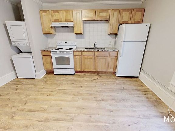 Luxurious crown moldingOversized trim and baseboardsStunning tile backsplashStove and fridgeHuge walk-in closetBeautiful wood floorGorgeous granite counters