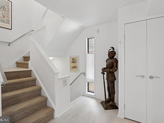 Welcome to luxury living at its finest in Penn's Landing! This exquisite bi-level condo offers a sophisticated urban oasis with unparalleled amenities and contemporary design plus COVERED GARAGE PARKING. On the main level experience the epitome of modern elegance with an open concept floor plan that seamlessly blends the living, dining, and kitchen areas. Adorned with luxury vinyl flooring throughout, this space exudes both style and functionality. The kitchen is a chef's dream, boasting brand new stainless steel appliances, including a custom refrigerator, Quartz countertops, and a subway tile backsplash. A custom wine rack above the refrigerator elevates the space and adds a unique flair. French pocket doors on this level open to a lovely bedroom making the perfect guest room, home office, or den. Finishing off the main living level is a renovated and modernized full bathroom complete with a tiled walk-in glass-enclosed shower with a dual shower head. Ascend the stairs, where every detail has been meticulously curated, including a new custom stainless steel banister that adds a touch of refinement to the staircase. New carpets are found throughout the two bedrooms that await on this level including the primary. The primary bedroom boasts a walk-in closet that houses the brand new washer and dryer. Indulge in relaxation in the tastefully renovated bathroom which can be accessed from both the primary bedroom and the hallway. From the sleek fixtures to the pristine finishes, no expense was spared in creating a spa-like atmosphere. Take entertaining to new heights with your SOUTH-FACING PRIVATE ROOF DECK, offering a serene retreat. Other notable features include a new roof installed in 2023, ensuring peace of mind for years to come. Residents can enjoy the luxury of a community pool and the convenience of one assigned parking space in the garage. Convenience is key, with easy access to major highways such as I-95, as well as nearby attractions like Penn's Landing, Head House Square, Old City, and Historic Philadelphia. Don't miss this opportunity to experience luxury living at its finest in one of Philadelphia's most coveted neighborhoods. Schedule your private tour today and prepare to elevate your lifestyle!