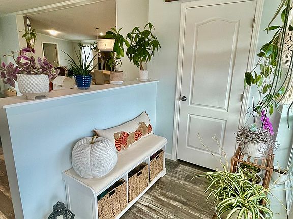 Built in 2021, this well-maintained one-level prefab ranch-style mobile home offers over 1,300 square feet of stylish, functional living space. The open floor plan includes 2 spacious bedrooms and 2 full bathrooms, all thoughtfully designed for comfort and easy living. The heart of the home is the modern kitchen, featuring stainless steel appliances and a custom island with a butcher block countertop - perfect for meal prep, entertaining, or casual dining. The open-concept layout seamlessly connects the kitchen, dining, and living areas for a light and airy feel. Step outside to a beautifully crafted custom patio ideal for hosting guests or relaxing in your private outdoor space. A 10 x 12 outdoor shed adds plenty of room for storage, tools, or hobby gear. Whether you're downsizing, starting fresh, or looking for low-maintenance living with upgraded finishes, this move-in-ready home is a must-see.