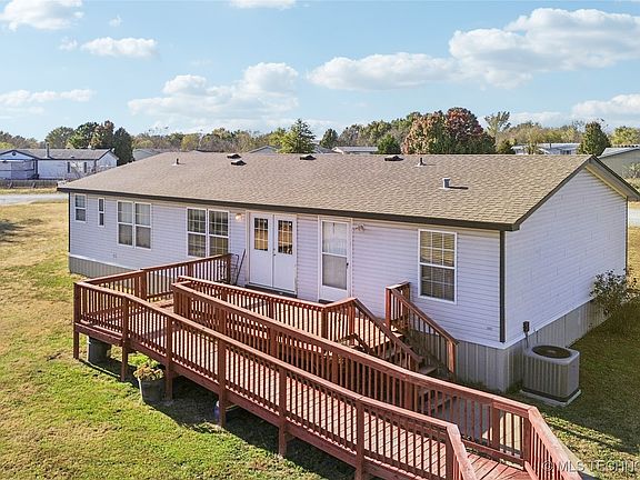 Several meaningful updates were completed within the last four years, including the HVAC unit, skirting, back doors, handicap-accessible rear ramp, and a widened primary bedroom door for easier wheelchair access. Fiber-optic internet is available at the road, making remote work and streaming easy. The location is hard to beat: approximately 10 minutes to Walmart in Pryor, 15 minutes to Lake Hudson, 15 minutes to the MidAmerica Industrial Park, and about 20 minutes to Claremore. This home isn’t trying to be fancy—it’s solid, practical, well cared for, and ready for its next owner who wants space, convenience, and value without the inflated price tag.