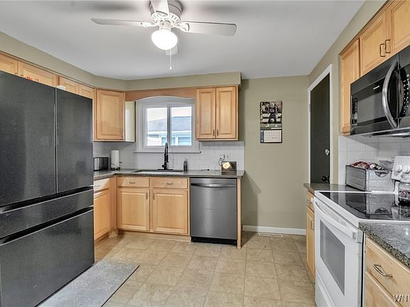 Amazing all Brick ranch with 2.5 car garage. New maple kitchen with quartz counters. Large living and dining rooms with hardwood floors. Updated windows throughout. New roof May 2025. Finished basement with 2nd full bath. Central a/c and baseboard heat. Covered front porch and storage shed in backyard.