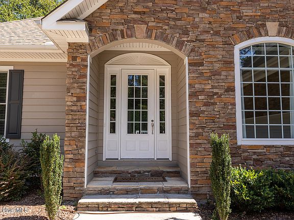 Situated in a great Pinehurst neighborhood, this beautifully maintained 3-bedroom, 3.5-bath home offers style, and comfort. With exceptional curb appeal, the exterior showcases durable Hardiplank siding and stacked stone. Step inside to a bright, open floorplan featuring hardwood floors and soaring 10' ceilings in the main living areas. The inviting living room includes a gas log fireplace with a floor-to-ceiling tile and wood surround, perfect for cozy evenings. Architectural details shine in the formal dining room, highlighted by white wood columns, a tray ceiling, wainscoting, and a large picture window with an arched transom that floods the space with natural light. The well-appointed kitchen features custom wood cabinetry with pull-out shelving, solid surface countertops, stainless steel appliances, recessed lighting, and a spacious pantry, ideal for any home chef. The split-bedroom layout offers privacy, with the secluded primary suite serving as a peaceful retreat. It includes a deep tray ceiling, crown molding, and large windows overlooking the backyard. The en-suite bath boasts a double vanity, jetted garden tub with etched glass window and decorative ironwork above, a step-in tiled shower, water closet, and a generous walk-in closet. A stylish powder room with wainscoting adds charm for guests. Upstairs, a large bonus room (or potential 4th bedroom) includes a full bath and walk-in closet which is perfect for a guest bedroom suite, home office, or rec room. There is also a transferable Pinehurst CC Membership! Don't miss your chance to own this exceptional home in one of the areas most desirable neighborhoods!