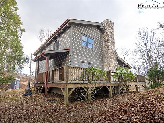 Beautiful log home with mountain views, wood burning fireplace, fully furnished, and located just around the corner from a public access on the Watauga River! Fantastic location only 20 minutes to Boone or Watauga Lake and 30 minutes from area ski resorts, every adventure in the High Country is just right down the road! Would make a fantastic primary or vacation home or a superstar for short term rental investment. Step onto the covered porch with beautiful mountain views and into the main living area with soaring tongue and groove ceilings with beam accents. Cozy stone wood burning fireplace with wormy chestnut mantle adds that rustic mountain charm that dreams are made of on a chilly night. Open flow from the living area to the kitchen with the laundry and a half bath in the hall. Primary suite on the main level accesses the front covered porch and has a spacious ensuite bath with double vanities and shower with separate jetted tub. Upstairs is another spacious bedroom with large closet and jack and jill access to another full bath with double vanity and tub shower. Large loft area overlooks the living area and could be utilized for another bed or office area or both! Come and see one of the most affordable a beautiful log cabins on the market today and be in by Christmas!