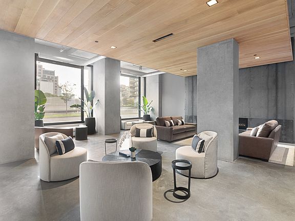 - Exterior features: 9' 6" High Ceilings, Barbecue, Bicycle storage, Business Center, Concierge, Event Kitchen, Free Weights, Game Room, Golf Simulator, Group Excercise, Guest Room, High-speed Internet Ready, LEED and Fitwel Certified, Meal Service, Media Room, On-Site Maintenance, On-Site Management, Package Receiving, Pet Park, Pet Washing Station, Quartz Countertops, RH Fixtures, Sundeck, TV Lounge