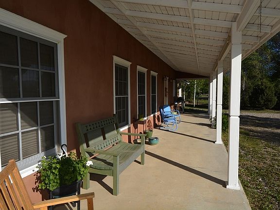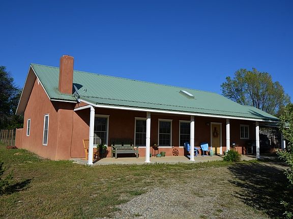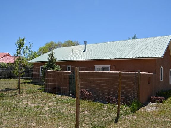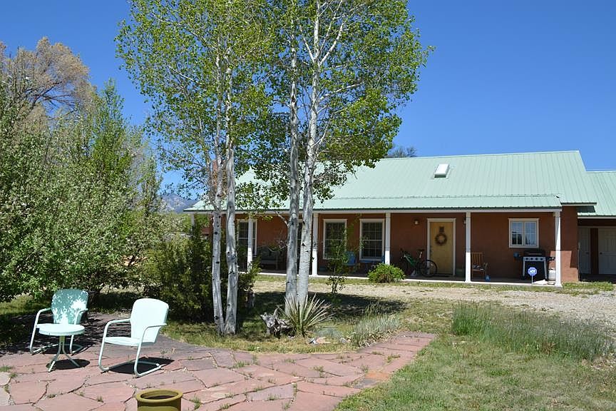 Just off tree-lined Upper Ranchitos Road down a country lane this territorial home offers the comfort and ease of in-town living. 1600 sq ft, one level, 2 bedroom, 2 bath on a level .6 acre lot. El Prado water and sewer and natural gas.Covered portal that runs the length of the house. Welcoming entry with coat closet. Great room concept with a large living room and an adjacent den with wood burning kiva fireplace. Open dining room and kitchen that features quality cabinetry, pantry, copper counter tops and a good flow and design for easy meal preparation. Both bedrooms are spacious, and baths have timeless finishes. Additional features include: Smooth plaster walls. Sash divided light windows. Attached carport with 3 storage areas. Circular driveway. Detached storage shed. Alarm System. Walled and gated back patio that opens to a fenced back yard area.
