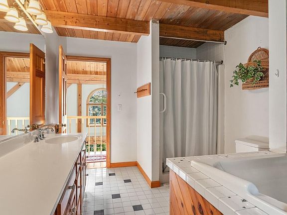 - Features: Balcony/Deck, Cathedral Ceiling(s), Full Bath, Separate Shower, Soaking Tub, Suite, Wood Burning Fireplace
