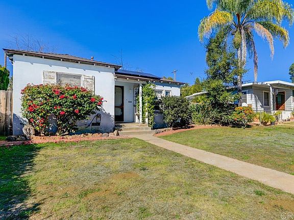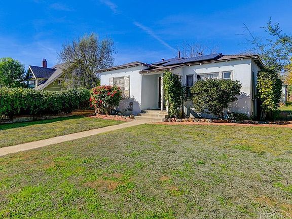 1940's bungalow bursting with charm and opportunity. Whether you are a home buyer seeking to design your dream home or looking for your next home project this property offers immediate appeal and immense potential for your creative imagination. Charming features include original and timeless hardwood flooring throughout, coved ceilings, original double hung windows, interior glass doors, a gorgeous arch, and original built-ins. A new roof and paid off solar, as well as an upgraded electrical panel offers opportunities to further modernize the home. Both the front yard and backyard are sizable providing an opportunity to expand the footprint of the home or create the outdoor oasis you’ve always wanted. The home is accompanied by a detached two-car garage with ample built-in storage, convenient alley access, and the potential to be transformed into an ADU. As a bonus, there is parking and hook ups for an RV also accessible from the alley. Located in the sought-after area of historic old Escondido, charm and convenience of a prime location, close to schools, shopping, and dining.