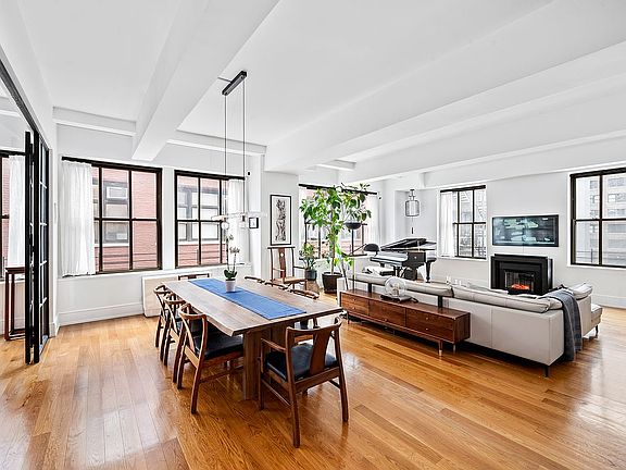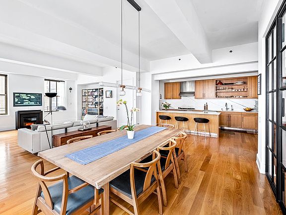 The living space has symmetry and ideal proportions for entertaining as the guests flow through the space without interrupting one another. The open, western exposure offers a unique experience for a loft with the corner southern windows bringing in a perfect ambiance of light. With space for multiple seating arrangements, a grand piano and a large dining table, it will accommodate the most exemplary of hosts.
