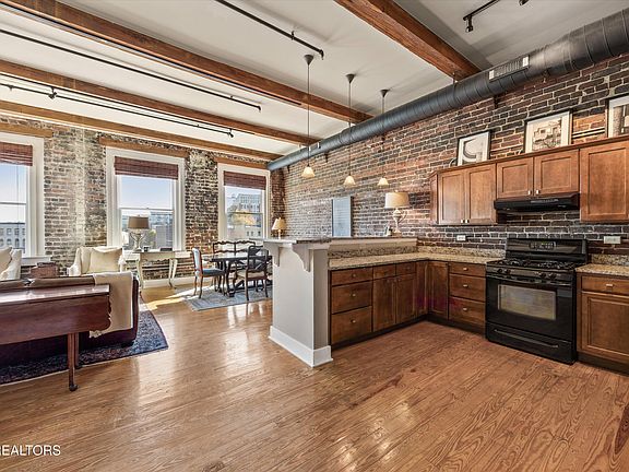 Enjoy the best kept secret in downtown living at this stunning loft residence! Situated in the historic Jackson Ateliers Building in the Old City and one block off Gay Street, you are only steps away from Knoxville's best cafes, restaurants, bars and shops. This fabulous loft features high ceilings with beautiful exposed timbers, original hardwood floors and warm, exposed brick throughout. A bright and open great room, with its expansive windows, flows into a spacious kitchen with a gas range and plenty of cabinets and prep space, sleek stainless appliances and modern fixtures. Enjoy a private bedroom with exposed brick, a tastefully-designed bathroom with granite countertops, laundry room and abundant closet space. Newer windows are an added bonus. You'll love the convenience of this quiet, private building with parking behind the building, a beautiful, artsy lobby and easy access to your condo. No long waits at the elevator or long walks to a city garage. Peace of mind is provided with secure, coded access to the building and the elevator. Owner currently leases one parking spot behind the building for $200/qtr. This is an historic building that was originally constructed around 1900 and converted into a mixed-use development with 12 residential condominiums on floors 2-4 and commercial occupants on the main level. No. 302 was completed in 2007. It's time to start living your best life in downtown Knoxville!