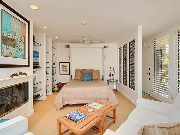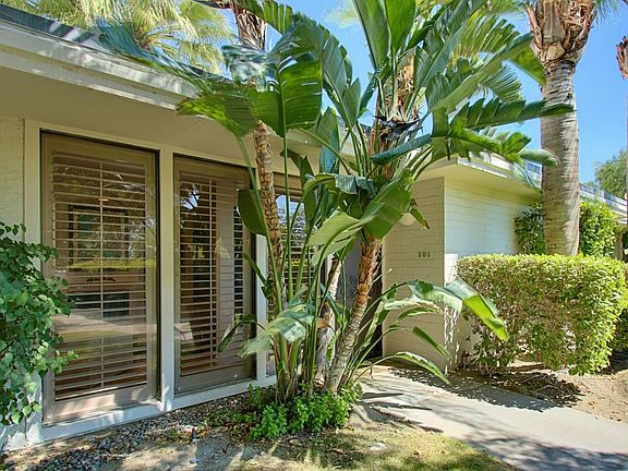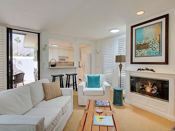 This is a seasonal rental that can be rented for a minimum of 1 month and is available to rent to November 30th. Fully furnished and equipped, the rate includes all utilities, cable and high speed WiFi, and access to all amenities. Could be ideal for visiting professionals, people in transition to a new home, or wanting to experience the desert during the off-season. This single-level garden villa is located in the popular Club Condominiums of Palm Springs, and offers guests a peaceful location with mature landscaping and mountain views. Just 2 miles from downtown, but tucked away in this quiet gated community. The park-like grounds were designed by a renowned landscape architect from the 1970s Hollywood era, with walkways that lead to a large central pool and spa area overlooking Mt San Jacinto. A variety of seasonal citrus trees line the drive and walkways, there for the picking! Inside this cozy corner studio you will find a bright comfortable living space with several skylights, and large windows overlooking the garden landscaping. The home features a well-equipped and upgraded kitchen, full bathroom with large soaking tub, a gas fireplace, Bose sound system with CD player, and a private patio with propane gas grill. For your outdoor enjoyment, the patio with table and chairs provides a perfect spot to enjoy meals, your morning coffee, or an evening sunset behind the mountains. Improvements as of 2019 include new carpeting, new deluxe memory foam bed mattress, and a new AC/Heating system. This is a seasonal rental that can be rented for a minimum of 1 month and is available to rent through up to November 30th. January through March of 2021 are booked.