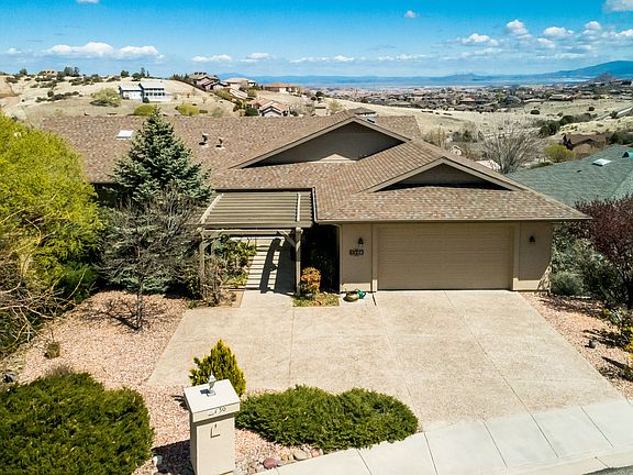 Turnkey Eagle Ridge Custom home with panoramic views and level drive offers the best of both worlds: 2430 sq ft of Single level living and an additional 2000 sq ft of unfinished walk out basement. Both levels enjoy large (12' X 32' ) covered decks which are private from neighbors while offering spectacular views of the San Francisco Peaks, The Dells and Granite Mountain. Main level features include a spacious master suite and second en-suite bedroom, open concept living area with stone-faced gas fireplace and beautiful wood flooring, designer kitchen with maple cabinets, corian counter tops, island, under cabinet lighting, breakfast nook, large office/den/library, 2.5 bathrooms, huge walk-in closets, skylights, large laundry room and a two car garage with