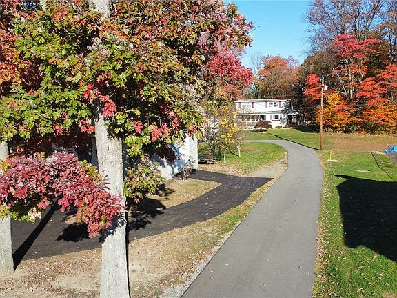 Welcome to this charming updated 1.5 story home featuring 3 bedrooms and 2 baths on a private 0.8-acre lot. A poured concrete walkway leads to the front porch, while the main level boasts a primary bedroom with an updated bath. The modern kitchen features painted cabinets, new countertops and flooring, along with a built-in oak desk. Enjoy the 12x16 composite deck overlooking a large yard surrounded by woods. The finished lower-level game room includes a brick hearth, painted fireplace, and an updated full bath, with access to a new covered stoop. The two-car detached garage has a brand-new lifetime roof, and recent updates include a newer roof on the house and fresh blacktop driveway. Nothing to do but move in and enjoy the tranquility! m.