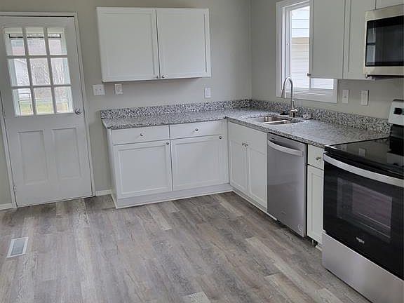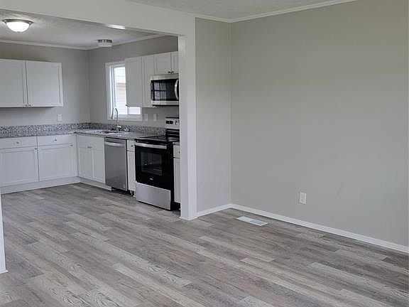 Nice 3 BR, 1 bath home, fully remodeled - new kitchen (cabinets, granite counters, stainless steel appliances [dishwasher, range, over range microwave hood, refrigerator], all with warranty. Laundry in home, newly tiled tub/shower, new vanity, new luxury vinyl flooring throughout. All new plumbing and electrical fixtures. New deck in back with fully fenced yard. Large 2 car garage. New insulation. New vinyl, insulated windows. New roof.