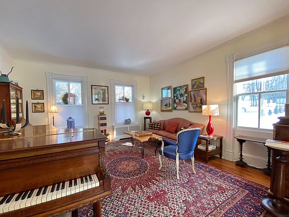 This circa 1820, sun-filled, period center hall with its stately slate roof is proudly perched atop William St on a large double lot. There's plenty of room to add a pool, garden, tennis court - whatever strikes your fancy! A full-width, ionic-columned front porch welcomes you into the home's expansive central hallway with high ceilings and hardwood floors throughout. To your left, a double parlor receives you with three sides of windows and one of the home's two fireplaces. On your right, you'll find the formal dining room off the eat-in kitchen with a separate laundry room and 1/2 bath, along with the home's second fireplace - this one a Rumford for maximum flame enjoyment and heat! There's also a spacious office off the entrance hall facing William St. The central hall staircase leads you up to the main bedroom with an en suite bath and oversized, adjoining dressing room (formerly, a fifth bedroom). Bedrooms 2, 3 and 4 are well separated for privacy off the long, second floor hall. A large, windowed second bathroom is located off the hall by bedroom 2, and an additional 1/2 bath is en suite to bedroom 3. Up a final set of stairs to the finished attic, and you'll find a full-width, wood-paneled office facing William St with three prominent dormer windows. Facing the rear and side lots, another set of three dormer windows punctuate a sun-filled, spacious studio with new hardwood floors that overlooks Beattie-Powers Place - "Catskill's historic home for the arts." And to top it off...literally...a widow's walk above the wood-paneled office affords stunning sunset views of the Catskill Mountains. Come make this beauty your own!