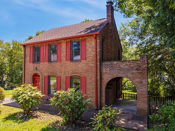 Built in 1935, this South Knoxville home masterfully blends timeless architectural charm with lasting curb appeal. From the moment you arrive, the home's symmetrical brick façade, arched entryways, and intricate brick detailing evoke the craftsmanship and elegance of a bygone era. Influenced by Colonial Revival style and complemented by Tudor-inspired elements -- like the arched side porch breezeway -- this home feels like a classic. The exterior has been thoughtfully preserved, maintaining its original brickwork and bright red shutter accents that lend warmth and historic character without feeling dated.