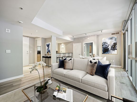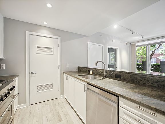 Stunning two-bedroom, two-bath ground-floor unit in the highly sought-after Solo Piazza, perfectly positioned in the heart of Logan Circle. With ample natural light, this beautifully presented residence offers over 1,100 sq ft of well-designed living space, complete with luxury vinyl plank flooring and striking floor-to-ceiling windows. The kitchen, a true chef's delight, is fitted with white cabinetry, granite worktops, stainless steel appliances, and a breakfast bar for casual dining. The generous family room, centered around a stone-surround gas fireplace, creates a welcoming atmosphere, while a slider doors open to a spacious private patio adorned with large planters, ideal for evening relaxation. A dedicated dining area provides the perfect setting for more formal occasions and entertaining guests. Both bedrooms serve as impressive suites, each with custom Elfa wardrobe fittings and a stylish en-suite bathroom. Additional highlights include a new water heater (2024), HVAC (2021), newer in-unit washer and dryer (2020 2021), excellent storage, and convenient street parking, with optional rental spaces available just a block away. Solo Piazza residents enjoy an array of first-class amenities, including concierge service with secure parcel handling, a serene bamboo courtyard, and a rooftop terrace with patio seating to take in sweeping city views. All this, just blocks from the Mt Vernon/Convention Center Metro (green and yellow lines) and moments from Logan Circle, 14th Street, Whole Foods, cafes, shops, and restaurants.