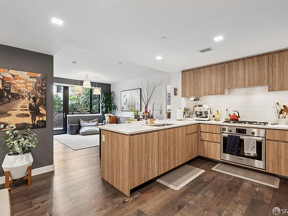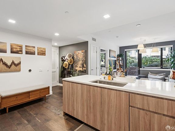 Discover the allure of Knox, and explore this first floor luxurious 2-bedroom 2-bath patio home. The community presents an organic-modern aesthetic, blending rustic charm with refined elegance, creating an inviting and comfortable living space. Inside, you'll find beautiful wooden floors, upgraded carpet in the bedrooms, a spacious walk-in closet, white quartz countertops, and premium Domus & Domus cabinetry. The kitchen is equipped with state-of-the-art Bosch appliances and recessed lighting throughout.This unit also boasts a private patio with views of a sprawling 3,000 sq. ft. enclosed courtyard. Here you'll enjoy an array of amenities, including a fitness center, an indoor media room, and a residents' lounge featuring cozy fire pits and shared barbecue areas. On site parking and additional storage come with the unit as well as a charging port at the parking spot for convenience. Enjoy easy access to the vibrant shopping and dining scenes along the 22nd Street and 3rd Street corridors as well as the ever growing pier 70 redevelopment, putting a diverse array of options right outside your door. Ideally situated, Knox is just two blocks from the CalTrain Station and a short distance to Muni, offering unparalleled convenience for commuters.