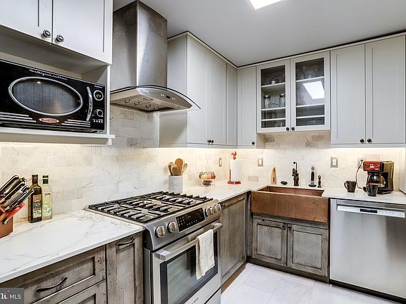 Nicest condo in the building!! Luxury living in amazing location! The level of upgrades in this condo are a rare find! Gourmet kitchen with large gas stove, upgraded cabinets and counters with marble floors. High end stainless appliances and copper farmhouse sink! Large dual head shower (now with glass door) and custom sink with copper soaking tub. You will feel like you are at the spa every day! Unit has large balcony off of living room and bedroom. Custom built-ins with hidden Murphy bed! Owner installed double pane soundproof doors to patio as well as door to unit. It is quiet! Hidden storage everywhere and wall USB outlets added for convenience! Condo dues include all power, water, gas, trash, front desk 24/7 concierge, pool. Wired for Xfinity and Verizon. 2 laundry rooms per floor in building. Community pool, tennis, and observation deck overlooking DC. Convenience store and dry-cleaning services. 24-hour front desk and security. Short walk to Pentagon City Metro, restaurants and shopping!