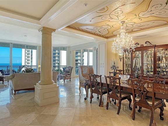 Gulf-Front Luxury at The Beach Residences — Ritz-Carlton Living on Lido Key! Ideally located on the 5th floor of The Beach Residences at the Ritz-Carlton, this expansive three-bedroom Estate residence showcases sweeping Gulf views and the signature lifestyle only Ritz-Carlton ownership provides. With 3,300+ square feet of interior living space and more than 600 square feet of private terrace, this property delivers coastal elegance and remarkable comfort in one of Sarasota’s most exclusive beachfront addresses. A private elevator opens to a welcoming foyer and gallery hall, revealing a dramatic Grand Salon framed by walls of glass and tranquil Gulf panoramas. Marble flooring, refined architectural details, tray ceilings, and custom built-ins elevate the sense of scale and serenity throughout. Designed for effortless entertaining, the open living and dining areas connect seamlessly to an oversized Gulf-facing terrace—perfect for sunset gatherings or quiet mornings with ocean breezes. The gourmet kitchen pairs functionality with style, offering solid-wood cabinetry, stone counters, a center island, and high-end stainless appliances including built-in ovens, gas cooktop with grill, wine refrigeration, and large pantry. A cozy breakfast area with floor-to-ceiling glass makes every meal a waterfront moment. The primary suite is a private retreat, complete with dual walk-in closets, morning kitchen, terrace access, and a luxurious en-suite bath featuring dual vanities, soaking tub, large shower, and private water closet. Two additional guest suites, one is a generous master-sized suite, provide privacy for family and visitors. Additional features include a spacious laundry room, hurricane-rated glass throughout, custom built-ins, and a gas fireplace. Exclusive to this residence, two premium parking spaces and a secure storage unit are included. The available Gold Ritz-Carlton Members Club membership further enhances this offering, providing access to premier golf, spa, and beach club facilities (refundable deposit required). The Beach Residences delivers an unmatched amenities experience: 24-hour concierge, resident services, oceanfront pool and spa, outdoor grills, spacious social lounge, media room, billiards, library, full gym, sauna, massage rooms, and elegant guest suites for overflow accommodations. A private, resident-only beachfront path invites direct access to pristine sand and turquoise waters. Ideally positioned on prestigious Lido Key, the location blends coastal tranquility with immediate convenience. Enjoy nearby dining on St. Armands Circle, boutique shopping, luxury spas, and walkable beach cafes. Sarasota’s celebrated arts and culture—including the Van Wezel, Sarasota Opera House, Orchestra, The Bay Park, and downtown galleries—are just minutes away. Marina Jack, Selby Gardens, Burns Court, and the city's waterfront promenade offer endless recreational options. A rare opportunity to own in one of Florida’s most refined seaside communities, this Gulf-front residence is more than a home—it's a private sanctuary shaped by world-class service, breathtaking vistas, and the effortless elegance only the Ritz-Carlton brand can deliver.