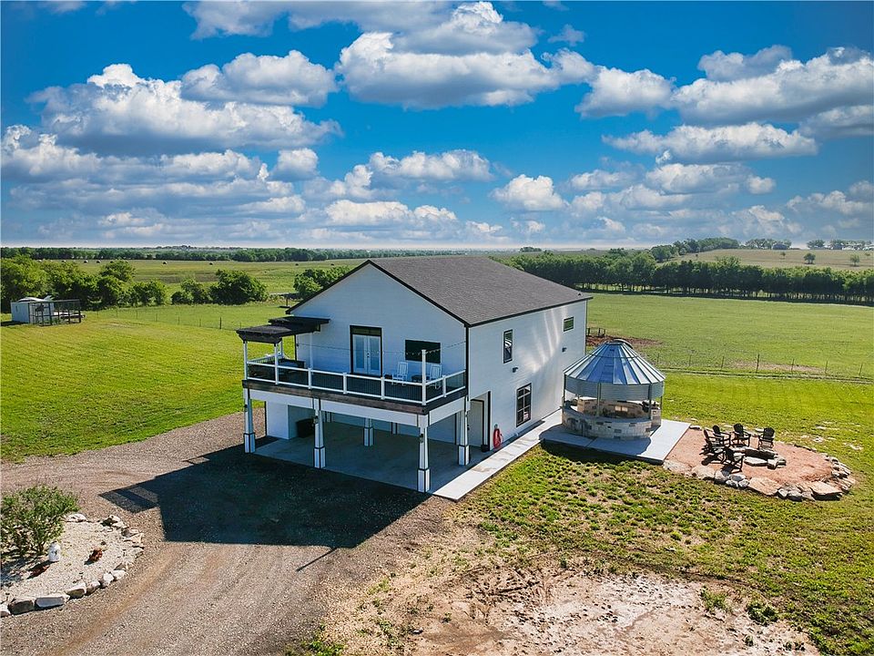 One of a kind home situated on 28 acres!! Free from any restrictions!! Country living at its best!!! This amazing home is just 2 miles from Buc-ee's and Starbucks and only minutes from I-35. This home has 28 acres and 15 of the acres is fenced with barbed wire fence area ready for your horses or cows for the ag exemption. The drive is 1/4 of a mile long so it is situated away from the county road for more privacy. This home boast 5 bedrooms 2 are master suites, 3 full baths with a half bath for guest, granite counter tops and a very open floor plan. A balcony off one of the Master suites, spacious rooms, a spacious office, firepit and a outdoor kitchen. However you like to entertain indoors or outdoors this home has the room for your family and friends to enjoy. Did I mention no city Taxes!!!