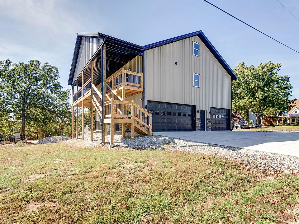 Discover a slice of paradise in this lake view residence nestled within a friendly community. Enjoy breathtaking Table Rock Lake and all it has to offer. The open floor plan seamlessly blends the living, dining, and kitchen spaces, creating an inviting environment perfect for hosting gatherings or enjoying quality time with loved ones. Home cooks will enjoy the double ovens and the 4 x 8 island with a walk-in pantry for storing dry goods and appliances. In this same space is a beautiful 80 inch fireplace to add warmth and ambience for cold winter days, or leave the heat off and enjoy during summer nights as well. The main floor hosts a master suite, walk in master closet and double vanity sinks with a spare bathroom and bedroom for guests. Head upstairs to find a full bath and two additional bedrooms and a small alcove that could be used as a sitting area. Check out the massive heated and cooled 40 x 40 garage. This space is perfect for all your tools, toys, and even space to add a man-cave or ping-pong table for family fun. This lakefront retreat embodies elegance, comfort, and recreation, making it the perfect blend of relaxation and excitement. You won't want to miss this one!