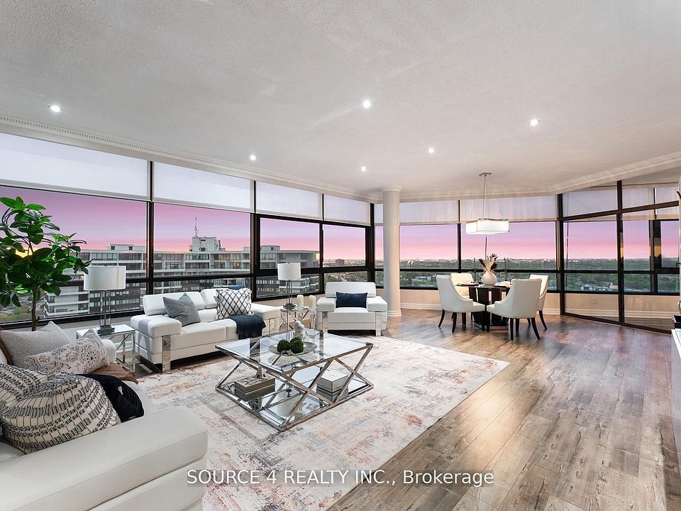 Welcome to an extraordinary, rarely offered two-storey penthouse suite nestled in the heart of Mississauga. Spanning nearly 3,300 square feet of beautifully upgraded living space, this exceptional 3 +1 bedroom, 2-bathroom residence redefines luxury condominium living. Set high above the city, this unique property offers breathtaking panoramic views of both the Mississauga and Toronto skylines, along with Lake Ontario, making it truly one of a kind.As you step inside, you're welcomed by a grand, oversized foyer that immediately sets the tone for the expansive layout that follows. The main level boasts generous principal rooms with soaring ceilings and an abundance of natural light. A sprawling living and dining area provides the perfect setting for entertaining or quiet evenings at home, while the upgraded finishes including premium flooring, designer lighting, and custom window treatments add a layer of refined sophistication.The modern kitchen is a chefs dream, complete with high-end stainless steel appliances, quartz countertops, and ample storage. A versatile den on the main floor offers the ideal space for a home office, creative studio, or additional guest bedroom perfect for todays flexible lifestyle needs.The second level is entirely dedicated to the luxurious primary suite, offering ultimate privacy and comfort. This serene retreat features a spacious bedroom area, a beautifully appointed ensuite bath, expansive closet space, and a dedicated laundry room for added convenience.With its unique two-level layout, incredible square footage, and prime location, this penthouse offers the rare opportunity to enjoy house-sized living with the ease of condo life. Located on the same floor as the buildings indoor swimming pool and spa, this penthouse offers the ultimate in luxury and convenience. Whether you're entertaining or relaxing, this is an unparalleled opportunity to own a sky-high haven that truly stands out from the rest. (Furnishings avail for sale).