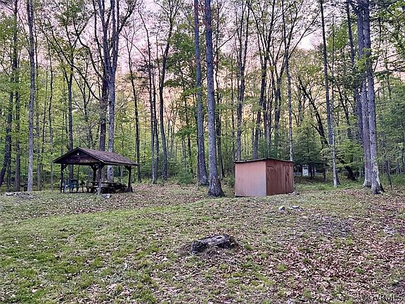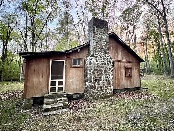 You can hear the flowing creek when you get out of your car! Vintage mid-century hunting cabin literally BORDERING the 1.6 million+ acre George Washington National Forest. Fresh water spring onsite. Rustic but functional furnishings convey, wood stove, electric fusebox, compost toilet inside, covered picnic pavilion and outhouse/storage shed. NO CELL SERVICE or internet, although seller says it's coming soon. The nearby Mountain View Country Store just a bit down 250 has free wifi.