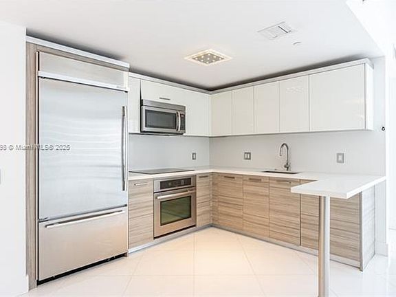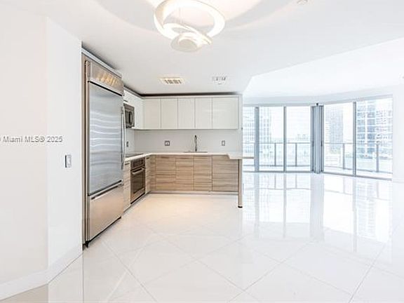 Floor-to-ceiling windowsQuartz countertopsItalian cabinetryOpen layoutCity viewsContemporary kitchenSleek tile flooring
