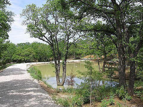 Heavily wooded, creek, pond, dock in pond, rolling terrain and road to build site that borders pond all located on cul-de-sac! Mustang water meter along with 265 ft. working well. One permanent elec pole & 1 temp pole. Entire Lot has invisible fencing. 2400 sq ft minimum w-70% masonry. Beautiful property! A rare find! Owner licensed real estate agent.