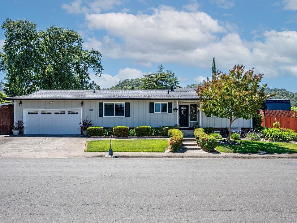 This meticulously maintained 3 bed, 2 bath home is move in ready. The separate living room with fireplace flows into the spacious kitchen/family room. The kitchen features top end appliances , an island, lots of storage, & granite counters. The spacious hall bathroom & primary bath have been upgraded. Enjoy the private backyard with covered patio, bar with mini fridge, has BBQ, hot tub, and in-ground pool. There's a large covered storage area in addition to a 2-car garage, covered work shop space, & R.V. parking with hookups.