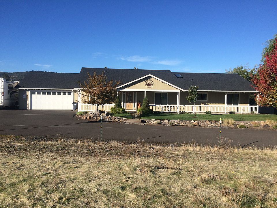 Very comfortable 2200 sq. ft. home on 12.38 flat acres, fenced and cross fenced. 3 bedrooms plus large office, could be 4th bedroom. 2 full baths. Master bath has jetted, heated Jacuzzi tub. Home has a Heat pump but also has the option of wood pellet stove for heat and propane fireplace for ambiance. Tile in bathrooms and kitchen floor, Granite counter tops in Kitchen. Living room & master bedroom are wired for surround sound with flush speakers in walls. Yards are nicely landscaped and have automatic in-ground sprinklers. There is a dry creek in the front yard. Large 24' x 34' garage. There is a 400 sq. ft. guest house on the property. Also an R.V. space with full hookups and 50 amp elec. service. Water is plentiful with a 100 gal. per minute well. There is a 120 ft. x 84 ft. covered horse arena or "would make a very nice indoor garden/grow area", and 8 - 12 x 12 ft. enclosed stalls with 12 x 12 ft. outside runs off the stalls. Tack area, hay storage and wash bay. Also a 50 ft. round pen. Property is next to Agate Lake which provides lots of riding opportunities right from the property! No trailering your horses just to go for a ride.