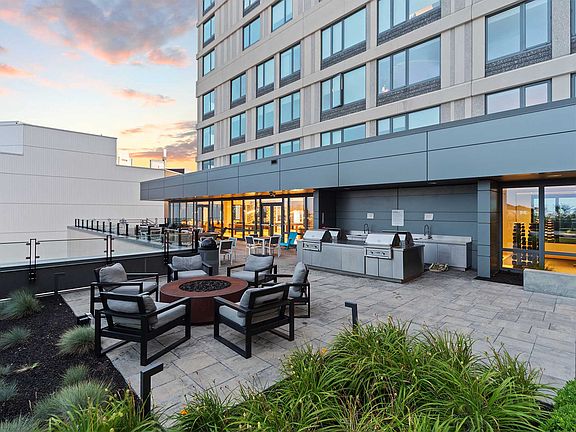 - Exterior features: 11 ft ceilings, 2 unique finish packages, Aldi grocery store onsite, Bicycle storage, Co-working spaces, Community demonstration kitchen, Conference rooms, Courtyard, Floor-to-ceiling windows, Flooring: Wood, Game Room, Hibachi table, Indoor / outdoor seating, Lawn, Outdoor gas grills, Pet Park, Pet Washing Station, Ping pong table, Podcast recording studio, Quartz countertops, Shuffleboard, Stainless steel appliances, Sundeck, TV Lounge, Theater, Tile backsplash, Undercabinet lighting, Undermount sink, Yoga room