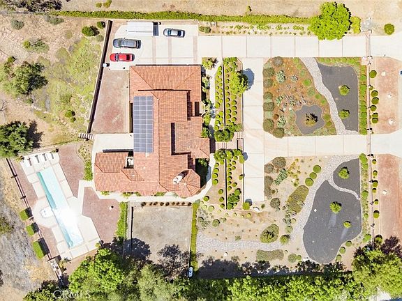 lower level features an ensuite, walk-in closet and quaint private brick patio where you can sip morning coffee and enjoy the gorgeous view. The grand staircase ascends to the upper level with 4 additional bedrooms and 3 bathrooms, which include an ensuite and the primary suite. The primary retreat is a private haven featuring a fireplace and sitting area. The spa-like bathroom has a marble soaking tub, walk-in shower and expansive walk-in closet with custom built-ins. If tranquility is what you desire the adjacent meditation room is an ideal retreat to escape into a good book or a quiet conversation. Outside there is a pool and spa with the deck overlooking the incredible South Corona landscape and incredible sunsets. Enjoy the convenience of a 4-car garage and RV parking. There is even an existing level area for a future sport court or additional unit. Embrace this opportunity to make this exceptional property your Southern California sanctuary.