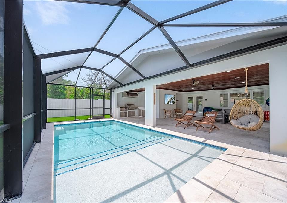 JUST REDUCED – FULLY RENOVATED COASTAL RETREAT MINUTES FROM THE BEACH Completely reimagined from top to bottom, 1300 Hilltop Drive is the definition of turnkey. Located just a short bike ride to the beach, this stunning Naples home has been transformed into a modern coastal resort, perfect for full-time living, a seasonal getaway, or a high-performing vacation rental. No detail was overlooked. Inside, you’ll find new plank tile flooring throughout, custom interior doors, elegant trim work, impact windows with granite sills, upgraded closets, and beautifully remodeled bathrooms. Systems are all updated too, new plumbing, new water heater, and a brand-new AC system offer worry-free ownership. The outdoor space is where this home truly shines. A brand-new heated pool and cage sit atop a luxury travertine deck, surrounded by lush palms, turf, landscape lighting, and even a mini-golf area. Entertain in style with your fully equipped outdoor kitchen, then rinse off in the new poolside bathroom with shower. It’s a true resort experience in your own backyard. Additional upgrades include a metal roof, new shed, and luxury exterior lighting for nighttime ambiance. Sold fully furnished, this home is Airbnb-ready and already set up to generate strong rental income from day one. Located in a quiet, no-HOA neighborhood just minutes from shopping, dining, and world-class beaches, this is one of the best values on the market for a move-in-ready, income-producing home in Naples. This one checks every box and shows like a model, schedule your private tour today before it’s gone.