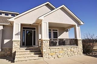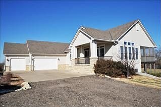 Welcome to Kickapoo Ridge located in Winfield! This is an custom built executive home located just minutes from Winfield Country Club & Golf course on a bluff above the Walnut River Valley. This property features 4 bedrooms, 3 baths with over 3800 square feet of living space. This home sits on over 5 acres of land and includes a 3 car garage with 1100 square feet. Front exterior features include a circular drive, spacious front porch with native stone pillars, solid wood entry door with sidelights and a built in sprinkler system. Once inside, the open and spacious floor plan are the first impressions that will last in this home. The living room includes a gas fireplace, central vacuum system, double door coat closet, oversized ceiling fan, upgraded carpet and 12 foot ceilings. The kitchen will be the family chefs dream as it features an 8x6 granite island that sits 4 people, stainless steel appliances, porcelain tile backsplash, tile floors, two pantries, cherry cabinets with upgraded nickel hardware, dormer windows, hidden outlets, self closing pullout shelves, dual stainless steel sinks and a dual fuel stove with warming drawer. The kitchen also features French doors that open to the deck for easy grilling year round. For larger gatherings, there is a formal dining room with large windows, chandelier and French doors to screened in porch. The master bath includes a 5x5 walk in shower with dual Kohler showerheads and custom Italian tile, insulated jetted tub, dual sinks, floor to ceiling linen storage and it connects to the huge walk in closet with custom drawers and adjustable shelves. Downstairs, the finished mid level walk out basement features a large lighted wood staircase, 9 foot ceilings, large family room with gas fireplace with stone surround, built in media cabinet with Bose surround sound, wet bar with granite countertops, cabinets, drawers, microwave, full fridge, and a rec room that would be great for a pool table or exercise equipment. Outback there i