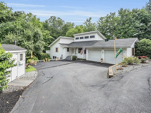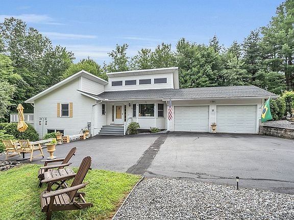 Magnificent contemporary ranch w/attached 2-car garage on 2.34 sprawling acres! Meticulously maintained open concept floorplan seamlessly connects to the bright & welcoming foyer. This stylish & updated home has gleaming hardwood, granite & ceramic tile floors throughout. Large breakfast bar w/granite countertop in the amazing, gourmet kitchen. Cozy fireplace w/tile surround in the living room. Lavish master bedroom suite w/master bath. Vaulted ceilings in the kitchen, dining & living rooms. French doors, lots of granite floors & countertops throughout the house (as well as in the "exceptional" finished basement, w/easy in-law potential).Central air. Two exterior decks as well as a lovely patio w/barbecue or jacuzzi area. Relaxing "sauna" in basement. EXQUISITE landscaping! 14 x 14 fire pit. Three storage sheds. New roof (2014), new heating system (2013), new hot water tank (2017), new central AC (2023). This home has even more & will check all the boxes on your wish list!