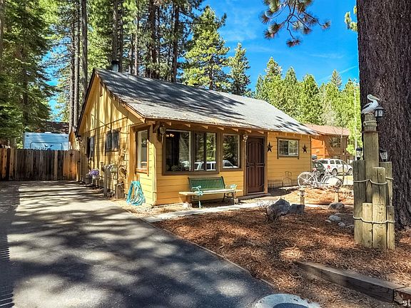 This charming yellow jewel box of a cabin packs a lot of character into its cozy footprint. With a lovely front garden and sweet curb appeal, the two bedroom, one bath home on a quiet side street is perfect for life today. Inside the main house, the pickwick pine walls and ceiling evoke Tahoe's past; the private outdoor space is fenced, with a pergola for shaded days. The electrified shed could be a work space/guest room/artist studio/shop; there's also a separate storage shed. This well-kept little gem has attic storage, trailer parking, nice neighbors - and Tahoe.