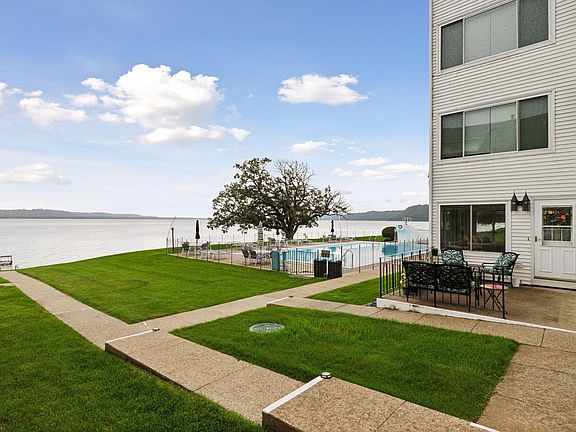 Coveted Lake City living at Pepin Lodge! Nestled along the bluffs of Lake Pepin, this 2+ bedroom, 2 bathroom, 1 garage unit brings all the stops! Updated kitchen & baths, new flooring, storage and in-unit laundry. Spacious and open-concept layout is extremely functional. Sunroom doubles as a 3rd bedroom if desired. Large picture windows capture calming lakeside views all year round. This unit features a private exterior entrance with patio. Enjoy the heated pool or sit on the private beach/dock while the sailboats float by. Your peaceful retreat awaits!