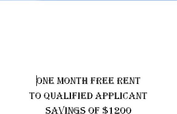 Attention all well qualified applicants. Get a free month of rent upon approval. For a limited time we are offering your second month of rent free upon approval of your application. You will receive your 2nd month's rent for free, which is a saving of $1200 for you. Apply today. This will be documented in the 12 month lease that you sign.