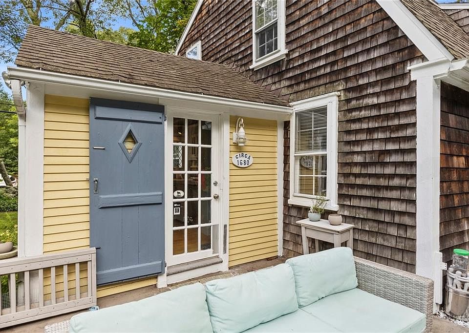 New price! This charming Colonial Cape, built in 1680 and affectionately known as the Brown Bread House, offers a rare opportunity to own a piece of East Greenwich history. Set on 1 acre of picturesque land, this home blends timeless character with a serene country feel — yet is just minutes from vibrant downtown East Greenwich. Enjoy the beautiful outdoor garden, perfect for quiet mornings, lively gatherings, or simply soaking in the natural surroundings. The main house features 2 bedrooms, 2 bathrooms, and 5 stunning fireplaces that add warmth and charm to every season. The thoughtfully designed layout includes inviting living spaces that reflect centuries-old craftsmanship alongside modern updates. An accessory structure provides endless possibilities, such as an artist’s studio, home office, gym, personal retreat, or accessory dwelling unit. Whether you’re seeking peaceful country living or quick access to shops, dining, and the waterfront, this historic gem delivers the best of both worlds.