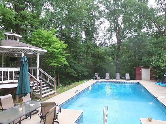 REMODELED HOME IN SMOKE RISE WITH BEAUTIFUL SALT WATER IN GROUND POOL. PRIVATE SETTING ON 2.4 ACRES WITH STREAM AT LOWER PART OF PROPERTY. FEATURES INCLUDE: HARDWOOD & CERAMIC TILE FLOORS, NEW VINYL WINDOWS, HOT TUB OFF MAIN FLOOR BATH, CERAMIC TILE SHOWER AND JETTED TUB IN MASTER BATH, GAS LOG FIREPLACE IN GREAT ROOM, SECURITY SYSTEM, ON DEMAND GAS HOT WATER. BACK DECK OVERLOOKS POOL & CREEK. 3 STORAGE BLDG'S, 1ST BLDG IS APPROX 20' X 20' WITH A CONCRETE FLOOR & ELECTRIC. 2ND BLDG 10'X 16', 3RD BLDG NEXT TO POOL 8'X 10'.