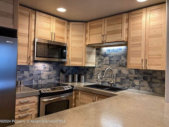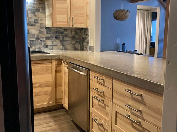 Don't lift a finger OR spend any money updating, it's all done! Three-bed/three-bath top-floor unit with vaulted ceilings and upgrades everywhere you look including hot water heater and furnace installed in the last year. All three bathrooms have gorgeous unique tile and updated vanities, floors, and fixtures. Two of the bedrooms have en suites allowing flexible usage and privacy for all. The kitchen is possibly the showpiece of the home with concrete countertops, stainless appliances and solid wood cabinets. Everyone will enjoy the solid surface flooring throughout, easy to keep clean and durable for everyone. All this in an easy convenient location allowing you to access everything mid-valley. Let's not overlook the wood fireplace, private storage and carport! The HOA also provides a private pool, tennis court and RV parking. Close to schools, parks, and Sunlight skiing.Excellent investment with high rental rates for the area.