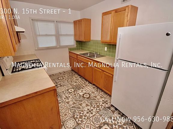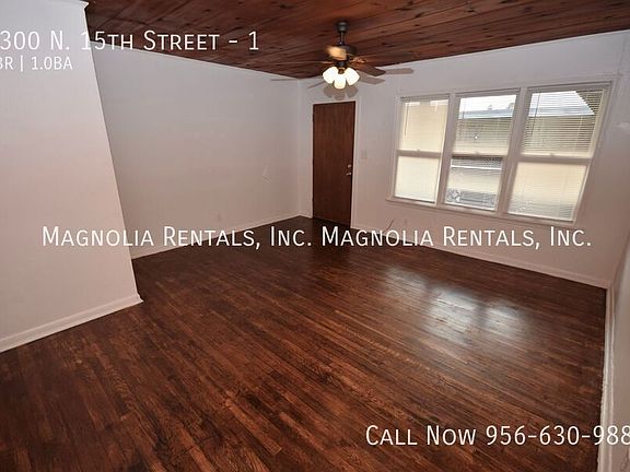 Welcome to 1300 15th, a charming residence nestled in the heart of McAllen, TX. This apartment offers two spacious bedrooms and one full bathrooms, including a master bath for added convenience. The open floor plan is accentuated by beautiful hardwood and tile floors, creating a seamless flow throughout the space. The kitchen is equipped with a refrigerator and stove/oven, perfect for home-cooked meals. The apartment also includes central AC and ceiling fans to ensure your comfort all year round. Utilities such as water, gas, and electric are included in the rent, along with trash pickup and lawn care, providing you with a hassle-free living experience. For your laundry needs, a pay laundry facility is available on-site. To top it all off, 24/7 maintenance support is provided to address any concerns promptly. This apartment is available for a 12-month lease. Please note that this is a no-smoking property. Experience the perfect blend of comfort and convenience at 1300 15th.