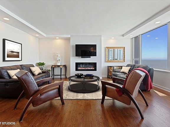 This beautiful renovated 2B/2B condo offers incredible unobstructed lake views and an impressive Lake Shore Drive address. Watch the activities of North Avenue beach, boaters, and Navy Pier fireworks. The elevator stops at your private and personalized foyer, which is a rare feature. The renovation includes new bath plumbing, a timeless kitchen, quartz counter-top & window sills, SS appliances, induction cooktop, wine refrigerator, H/W flooring, custom recessed can, and crown lighting, fireplace, Bosch W/D, and remote blinds. En-suite bedroom with custom Robern dual med cabinets, a custom walk-in closet, and remote room darkening blinds. MO ASSMTS includes everything but electricity/average $36.27 a month. 151 CTA right out the door. The penthouse level offers residents' a fitness club, an indoor pool, hot tub, gym, and hospitality room, and an amazing roof deck. FULL-SERVICE BUILDING--- 24-hour door staff, concierge package delivery to resident's private foyer. Weekly car wash included in the parking rate and complimentary free guest parking for family, friends, and all party guests! Yes, FREE! Pet friendly. Storage Included! The windows have been replaced.