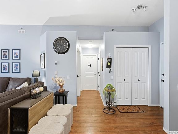 Welcome to The Lofts on Stockton—a well-managed condo in Lakeridge, steps to north-end shopping, parks, and transit. This bright 2 bed, 2 bath apartment offers 826 sq. ft. with soaring living-room ceiling lines, a transom window, and a garden door to your private balcony with skyline views. Thoughtful finishes include warm laminate floors in the main living areas, plush carpet in the bedrooms, and convenient in-suite laundry. The open kitchen provides excellent cabinet space and comes complete with the appliances. A wall A/C helps keep summers comfortable. The generous primary suite features a walk-through closet into a full 4-piece ensuite, while the second bedroom sits beside another full bath—perfect for guests, roommates, or a home office. Ownership is easy here: condo fees of $352/month include common & exterior building maintenance, heat, water, sewer, reserve fund, lawn care, snow removal, and garbage service. There is also a large storage room attached to the balcony. The unit sits on the 4th floor of the building, offering extra light and privacy. Whether you’re a first-time buyer, downsizer, or investor, this move-in-ready condo delivers space, convenience, and value in a prime north-Regina location. NOTE: Fridge, Washer & Dryer were updated in 2025.