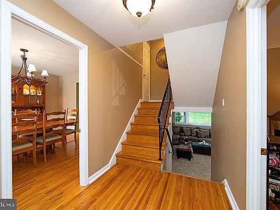 Move-in condition! This Woodstock model 4-bedroom 2.5-bathroom home with an oversized 1.5 car garage has beautiful, refinished hardwood floors, replaced Champion windows, Carolina beaded 6.5-inch vinyl siding and upgraded Englert seamless gutters with leaf guard protection. The updated kitchen has extended breakfast room for the kitchen table with sliding glass doors that exit to the replaced trex deck. The windows have scenic views of the back and side yards where there is a paver patio for entertaining. Kitchen has a double wall oven, microwave, electric cook top (gas conversion available), recessed lighting, and tiled back splash. The English finished basement has custom built-in shelves with plenty of natural sunlight to see the backyard. The formal living room features hardwood floors and a brick gas fireplace with dental molding finish around the mantle. 4 generous sized bedrooms with hardwood flooring and plenty of closet space. There's a possible office/5th bedroom with an entrance to the attic for additional storage. The double concrete driveway will hold 4 parked cars. HVAC installed 2020.